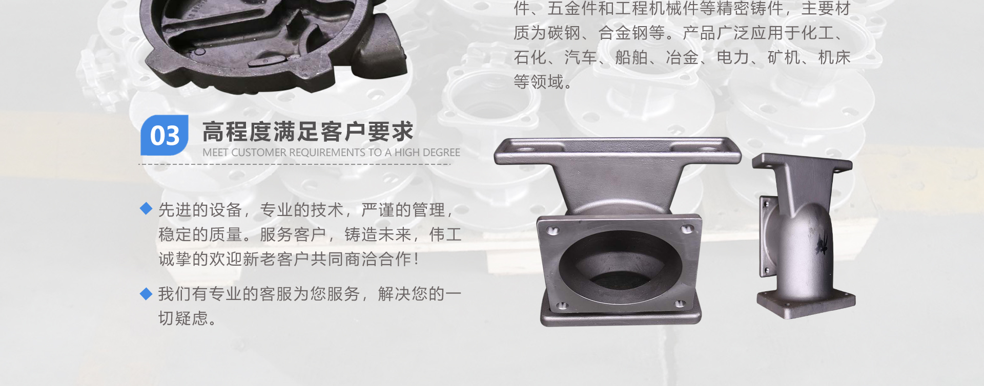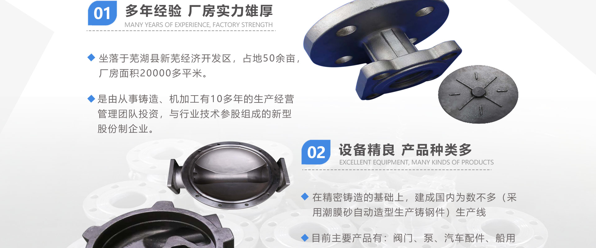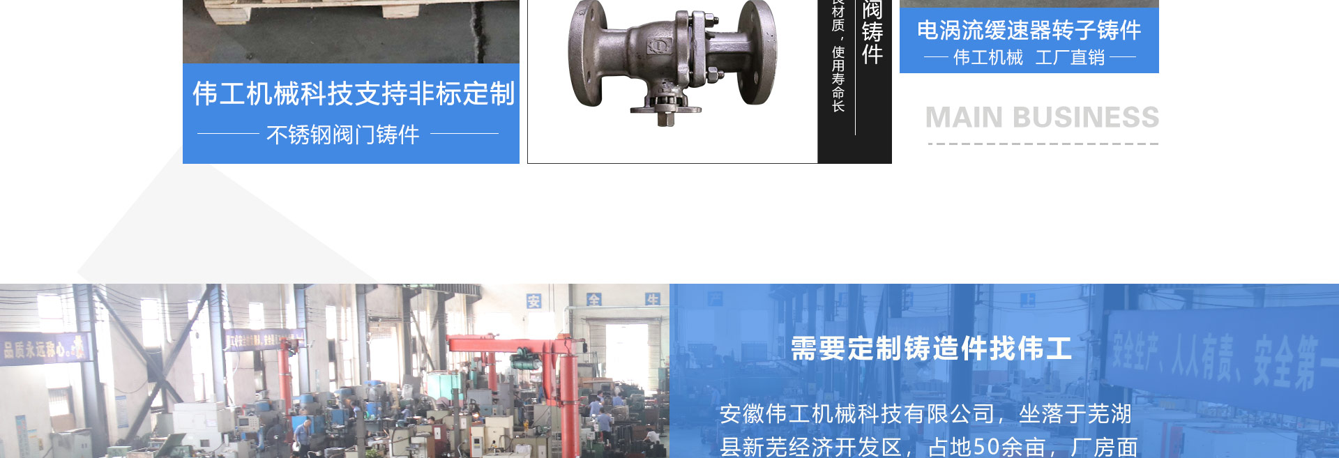 安徽偉工機械科技有限公司,坐落于安徽蕪湖新蕪經濟開發(fā)區(qū),是一家専業(yè)從事鑄造產品設計、研發(fā)、生產、銷售于一體的企業(yè),公司為客戶的產品提供多樣的技術支持與設計,公司主要鑄造技術有潮模砂鑄造、硅溶膠精鑄工藝。主要產品有:不銹鋼閥門配件、泵閥配件、汽車配件、工業(yè)管道配件、工程機械配件、汽車配件等。材質為:低合金鋼、304、316、316L、鉻鉬鋼、哈氏合金、碳鋼、雙相鋼等。公司已先后通過ISO9001和TS16949等多種體系審核,以完備的管理手段和齊全的檢測設備滿足客戶需求,進的設備,専業(yè)的技術,嚴謹的管理,穩(wěn)定的質量。服務客戶,鑄造未來,偉工誠摯的歡迎新老客戶共同商洽合作